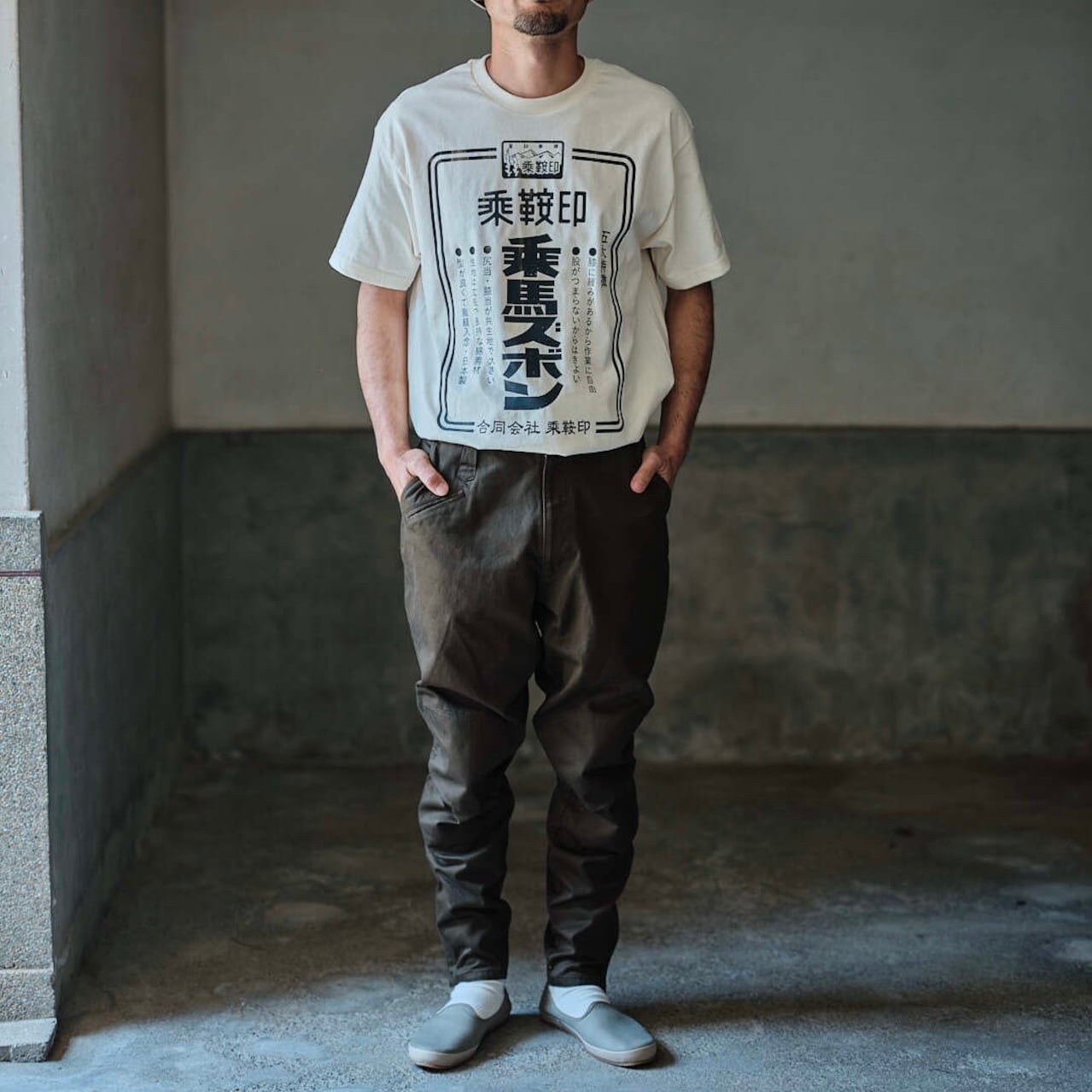 約百年もの間、飛騨高山の百姓や山師、職人たちに履き続けられてきた乗馬ズボン「乘鞍印」。 複雑なパーツや立体裁断、イセ込みなどを駆使した膝の溜まりは、ストレッチ素材がない時代に見出された縫製技術が詰まっており、人の手でしか作り出せない他とは一線を画す製品です。
