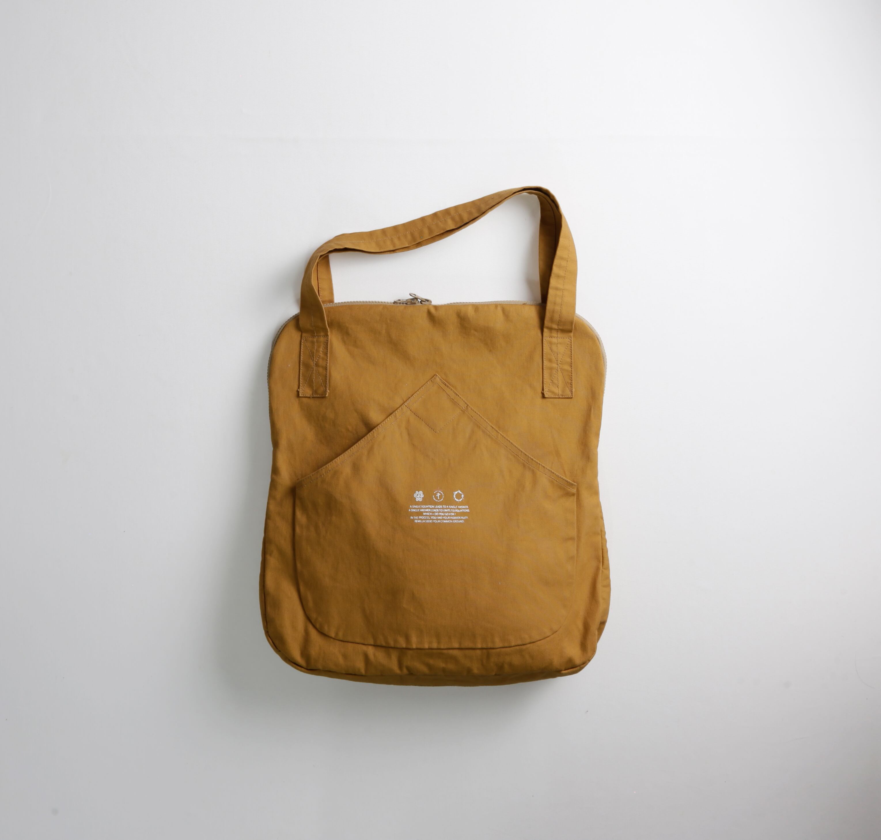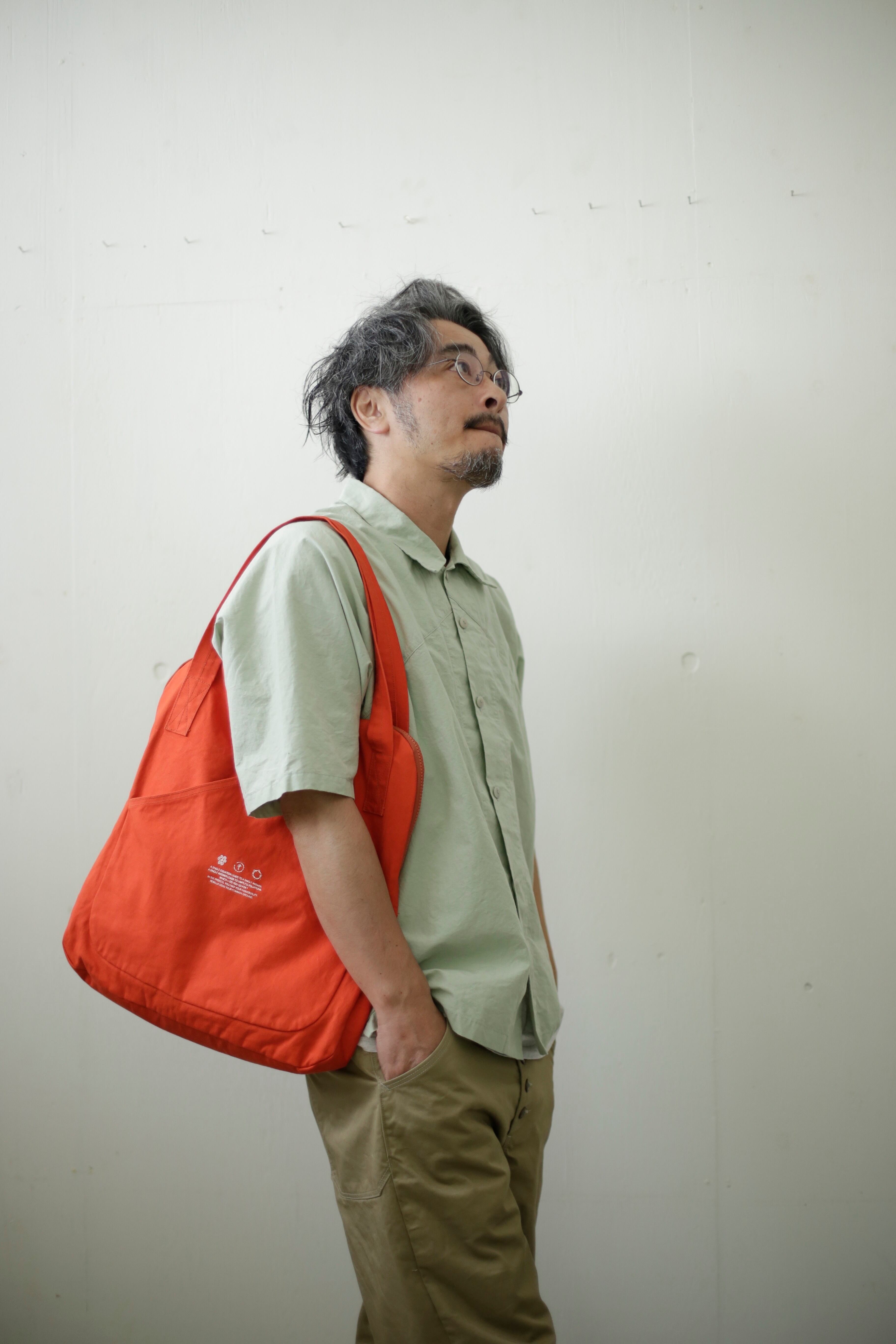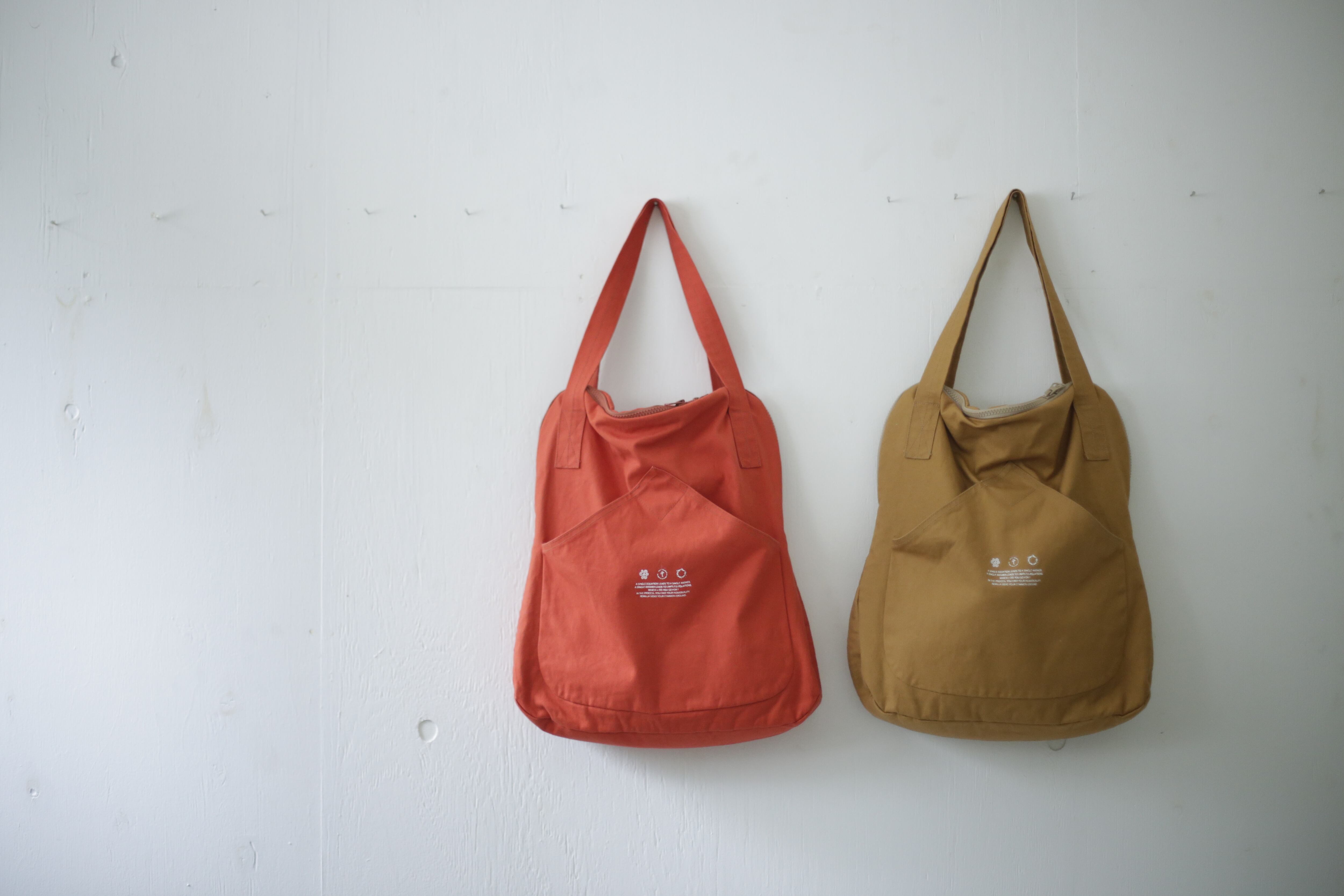 【商品紹介】11合帆布を使用。そら豆の形状からインスピレーションを受けたショルダー型のバック。作りとしては、どちらからでも開閉しやすい頭合わせのビスロンファスナーが付き、表にはアイコン的なカンガルーポケット。中には裏地が付き、小物の仕分けが出来るポケットが付きます。
