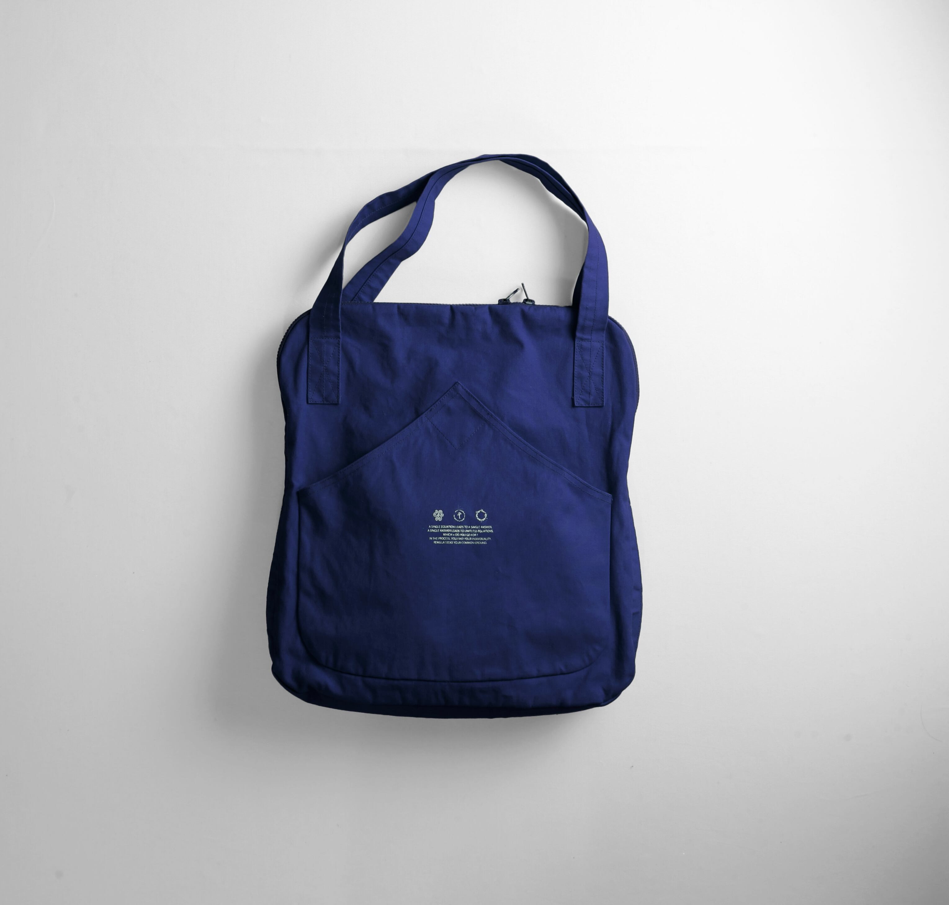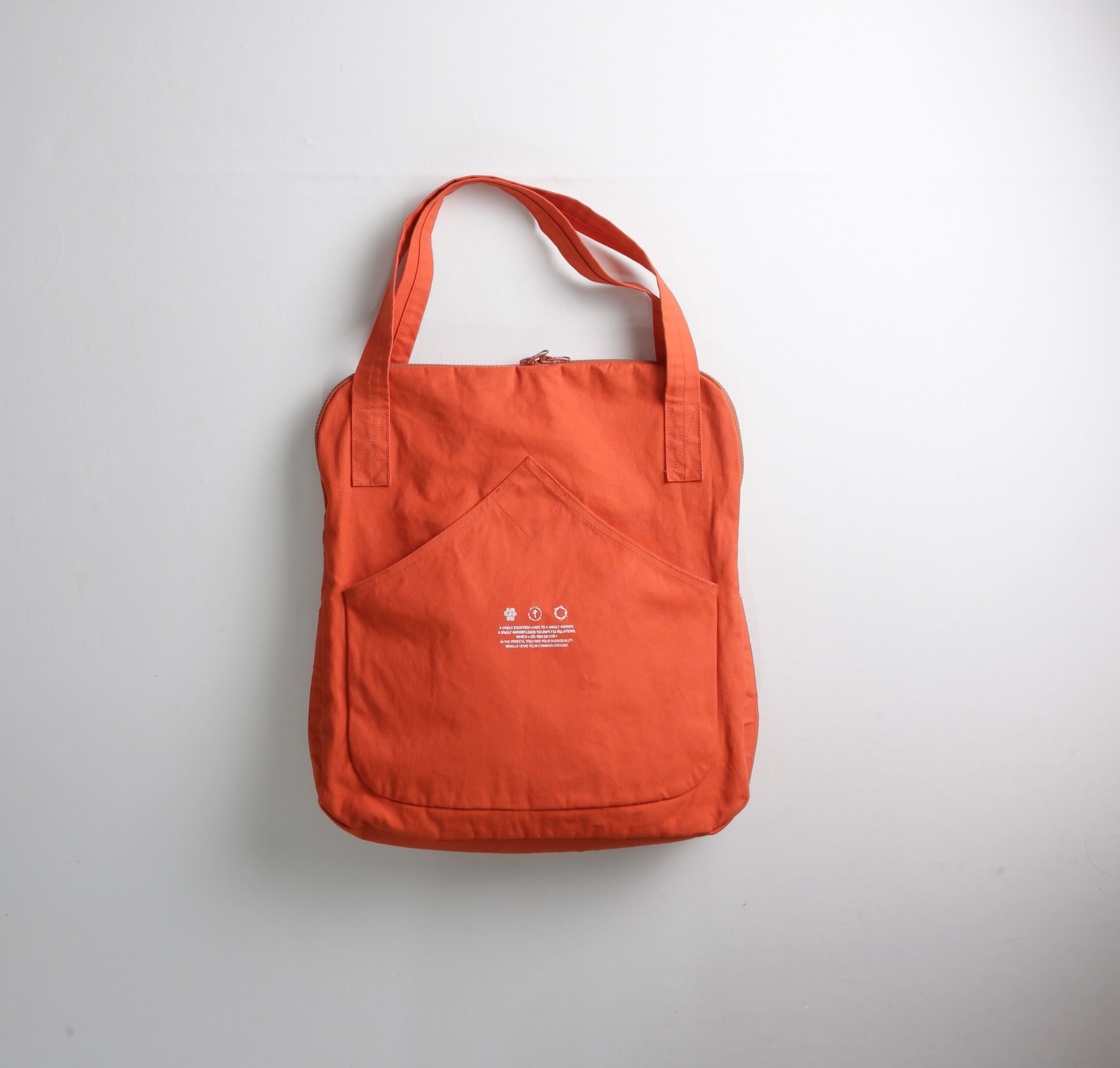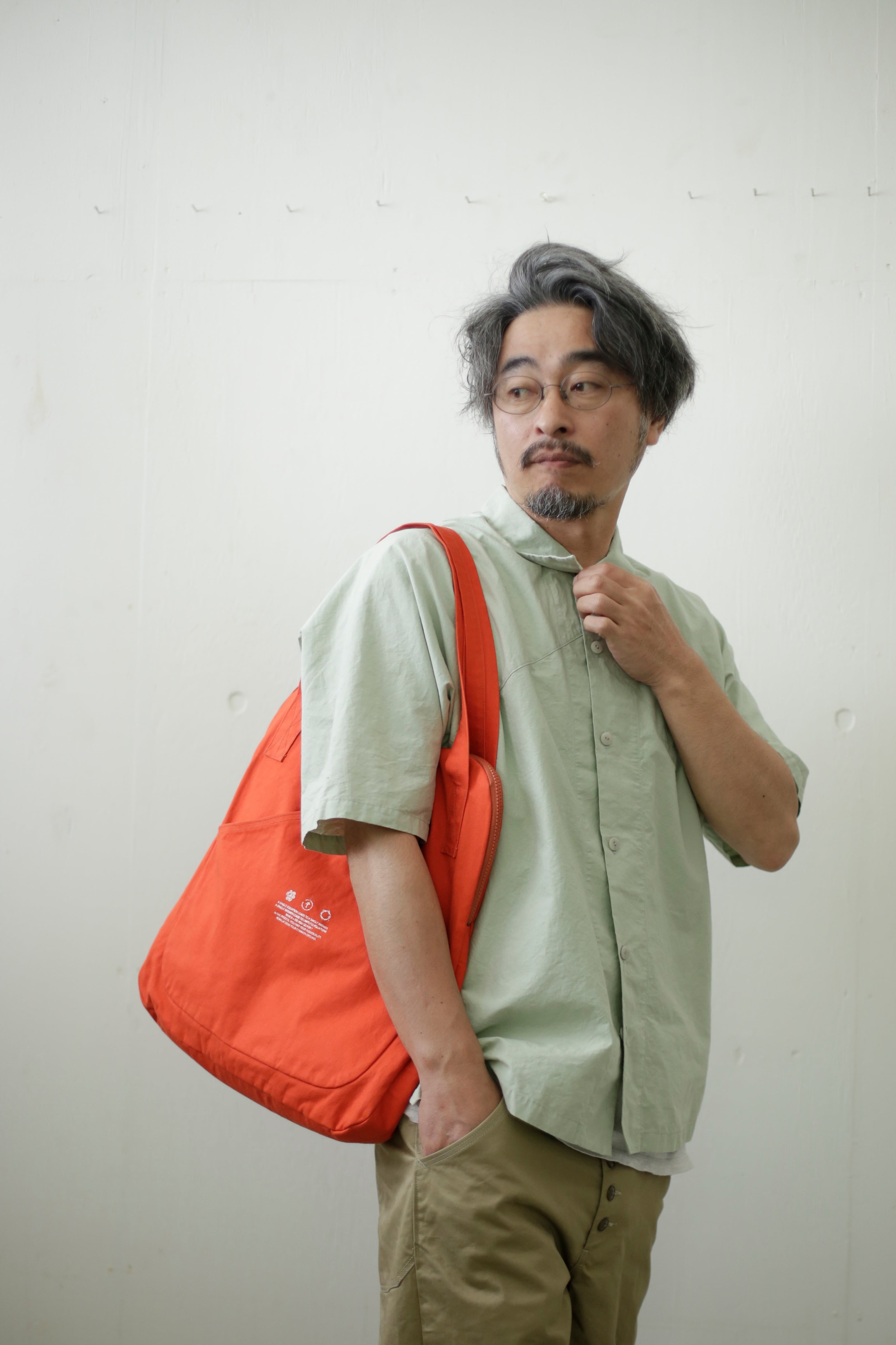 【商品紹介】11合帆布を使用。そら豆の形状からインスピレーションを受けたショルダー型のバック。作りとしては、どちらからでも開閉しやすい頭合わせのビスロンファスナーが付き、表にはアイコン的なカンガルーポケット。中には裏地が付き、小物の仕分けが出来るポケットが付きます。