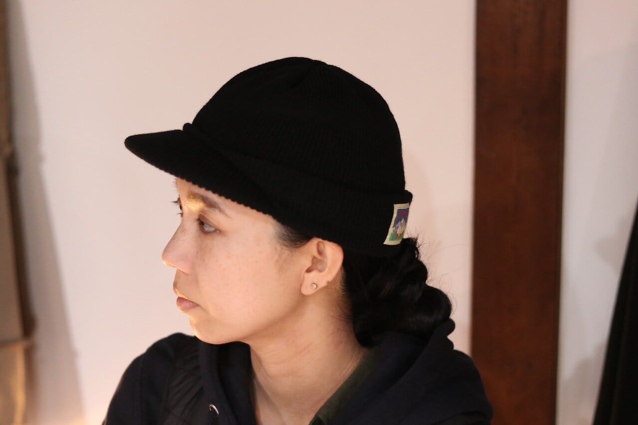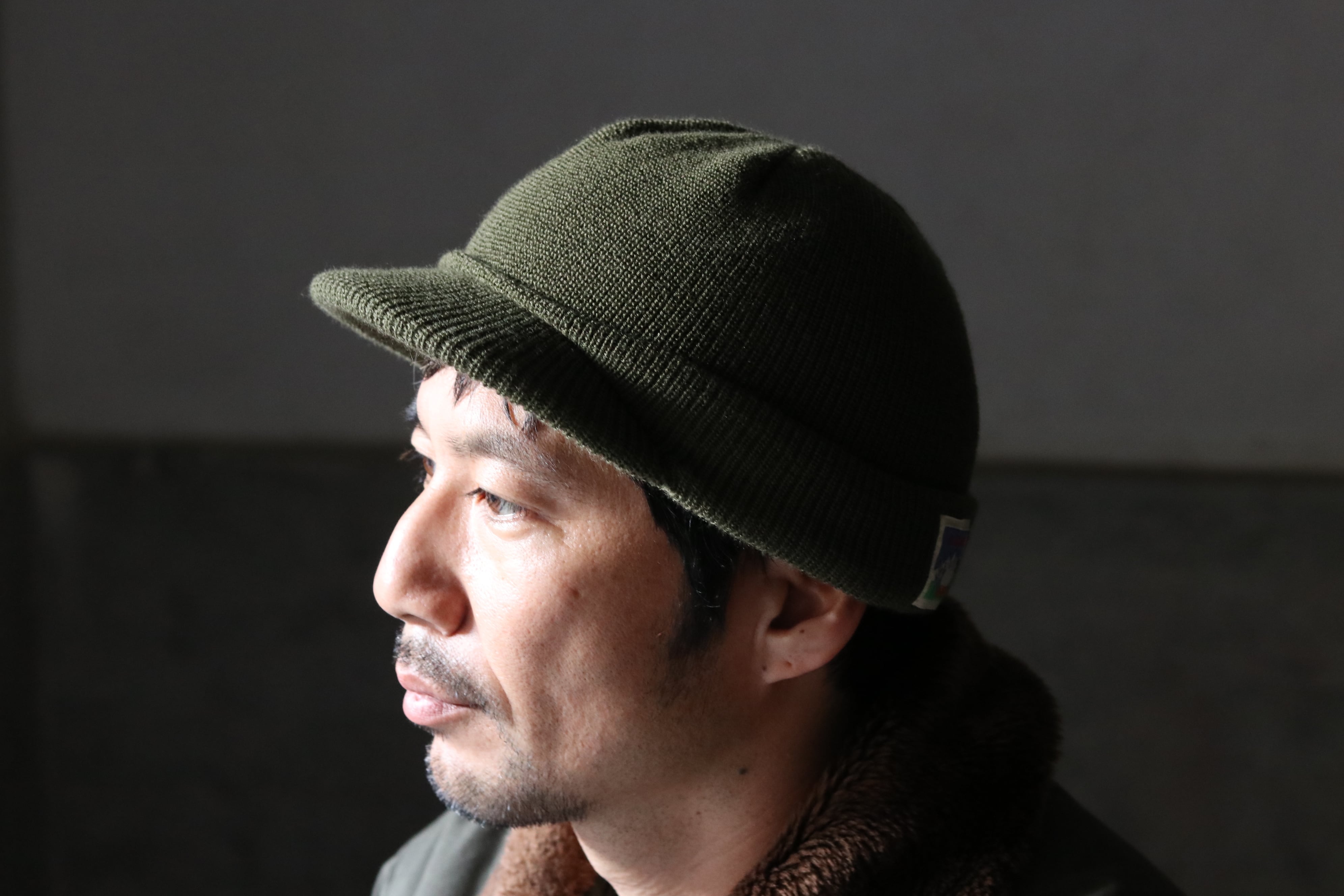 ジープ帽(ジープキャップ)とは、第二次世界大戦中にアメリカ陸軍が採用した、つば付きのウール製ニット帽です。オープンタイプのジープを運転する兵士が、防寒性と眩しさを避けるためにこの帽子を好んで着用したことから名付けられたようです。日本では昭和の時代に流行った雪国ドラマのイメージがとても強いです。降り積もる雪からツバがある事で視界を守ることも出来るジープ帽◎