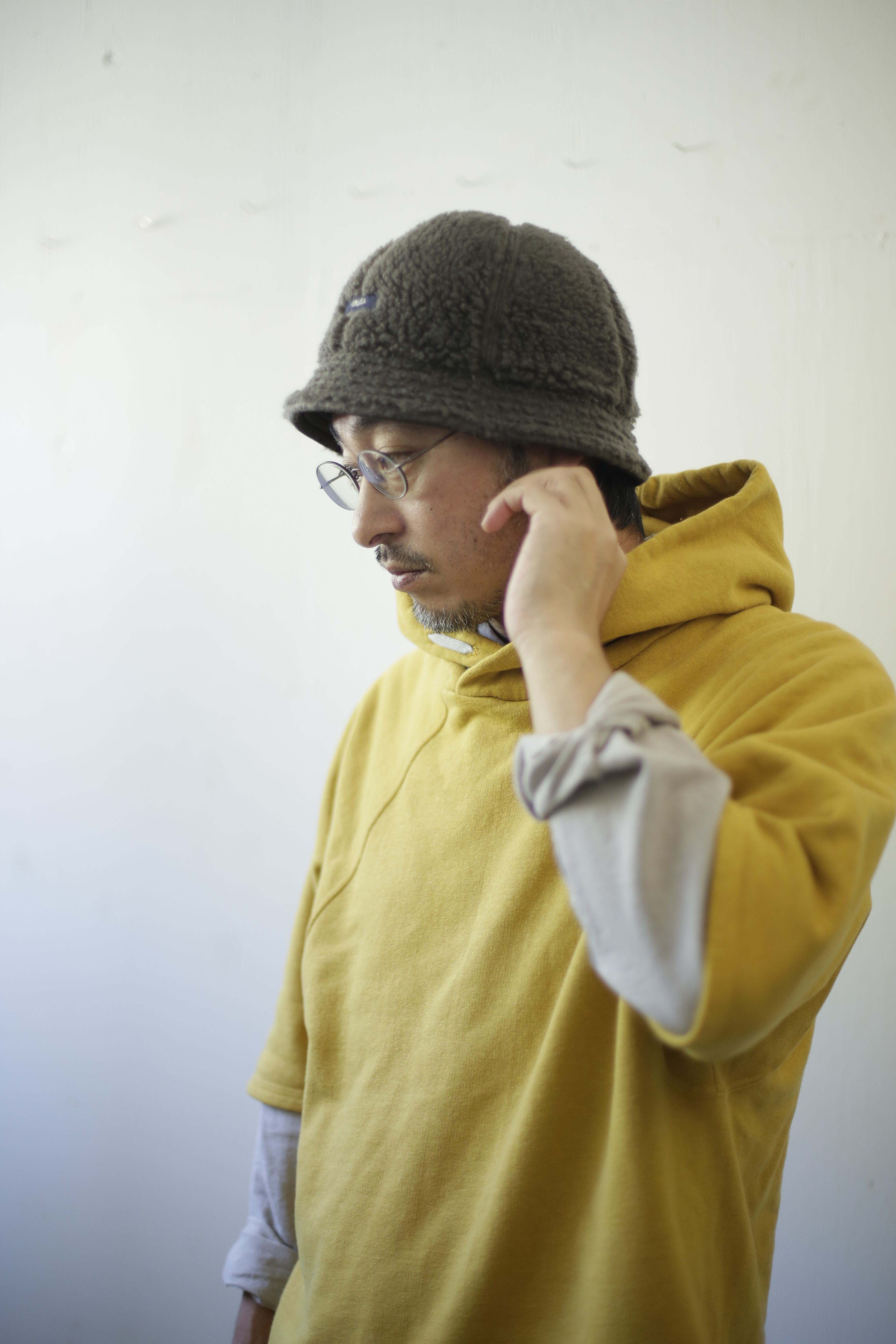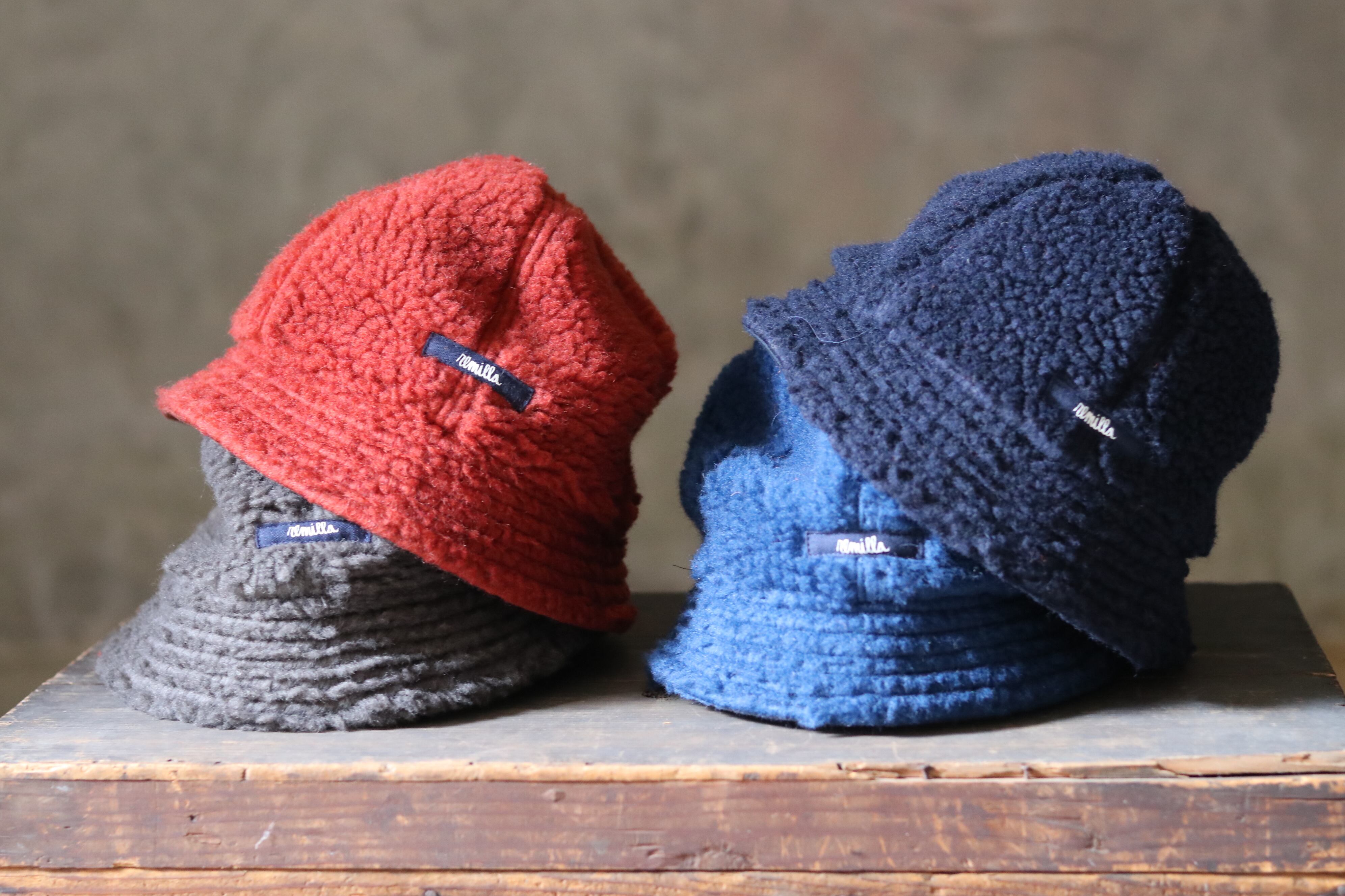 ウールが入ることで色味や表情に特徴があり、表面はモコモコした毛、裏面は網地が見える片面ボア生地を使用。内側帯布とツバ裏にツイル素材がそれぞれ付く使用。少し変わった存在感のハットで、ニット帽感覚で手軽に被れるものとして探ぐりました。是非、ビーズハットをお試しください!