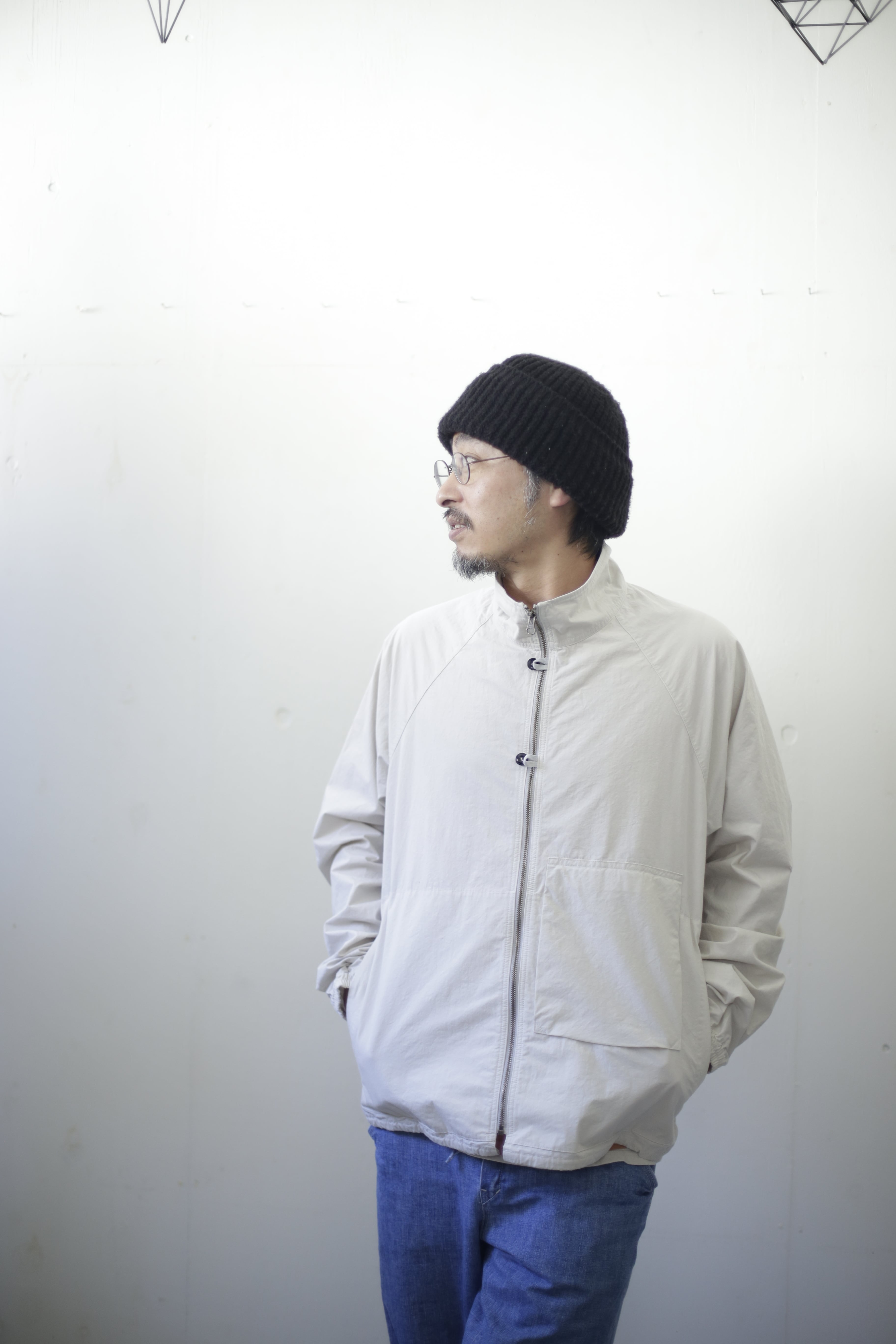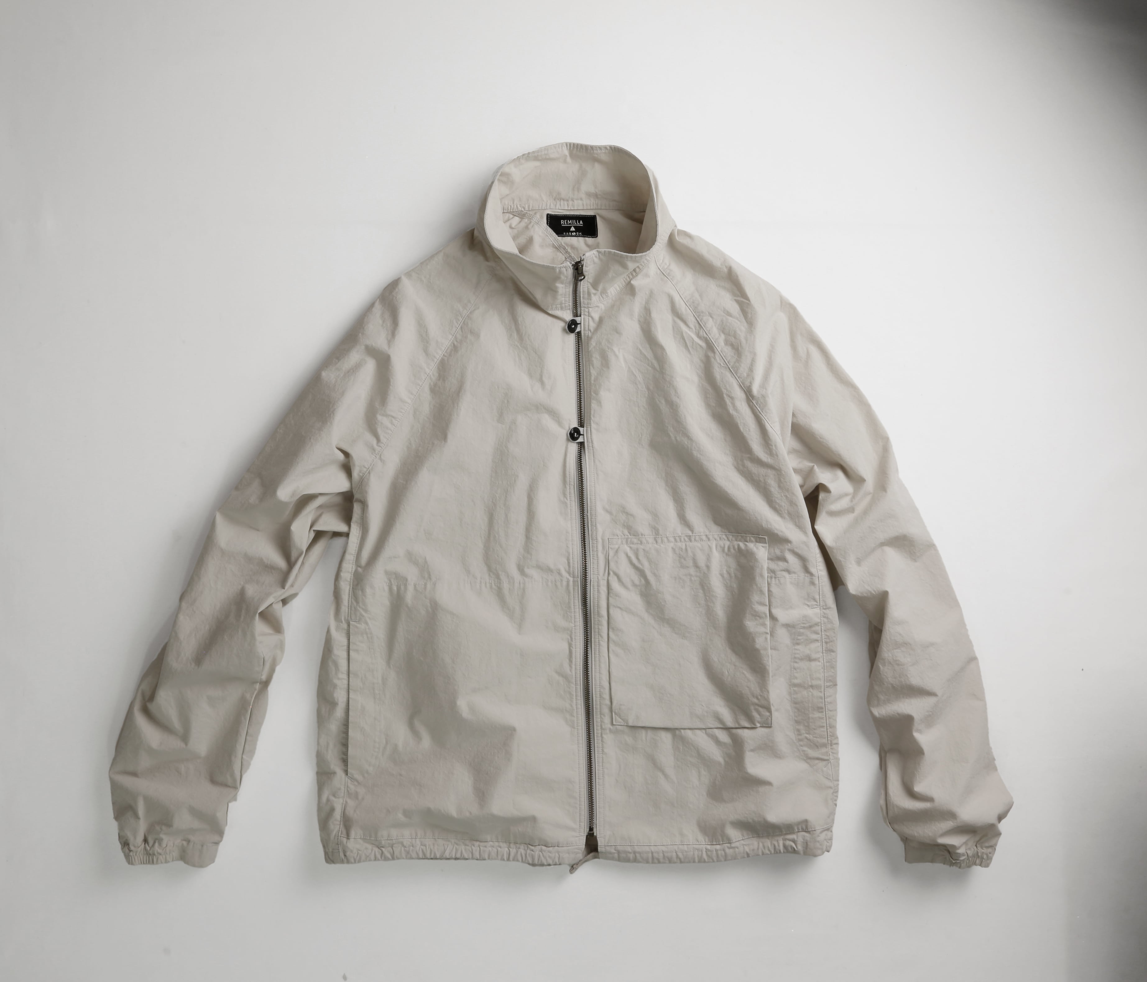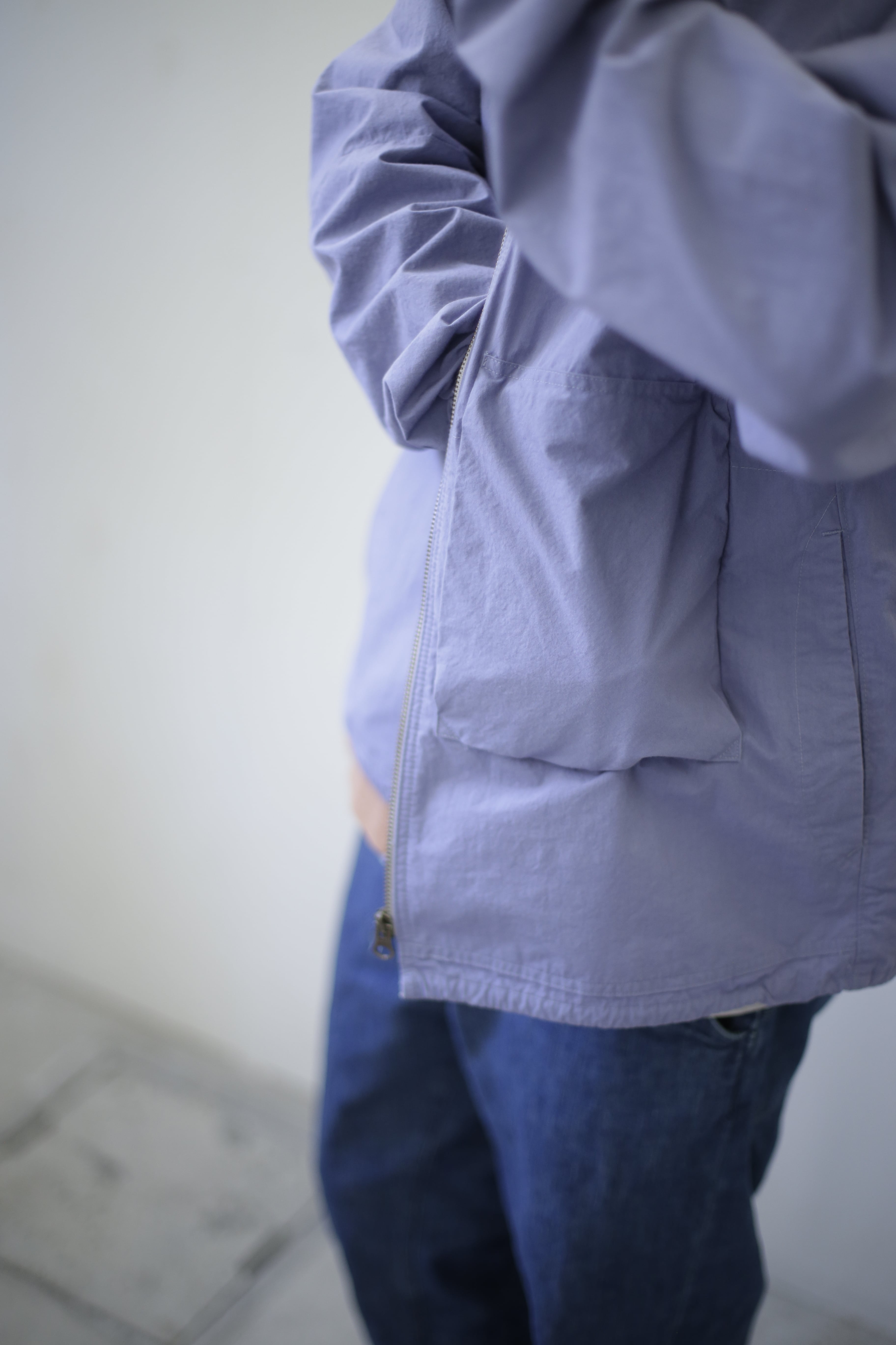 【商品紹介】 薄手でありながら高密度ダンプを使用することでハリやコン、ウインドブレーカー的役割を果たして通年使えるアイテム 。重ね着するイメージ でゆったりとしたシルエットに、背中にはヒトエラグランと名付けた左右非対称の切替が入ります。袖口にはゴム、裾口には簡易的な調節が出来る紐が入る作りになります。