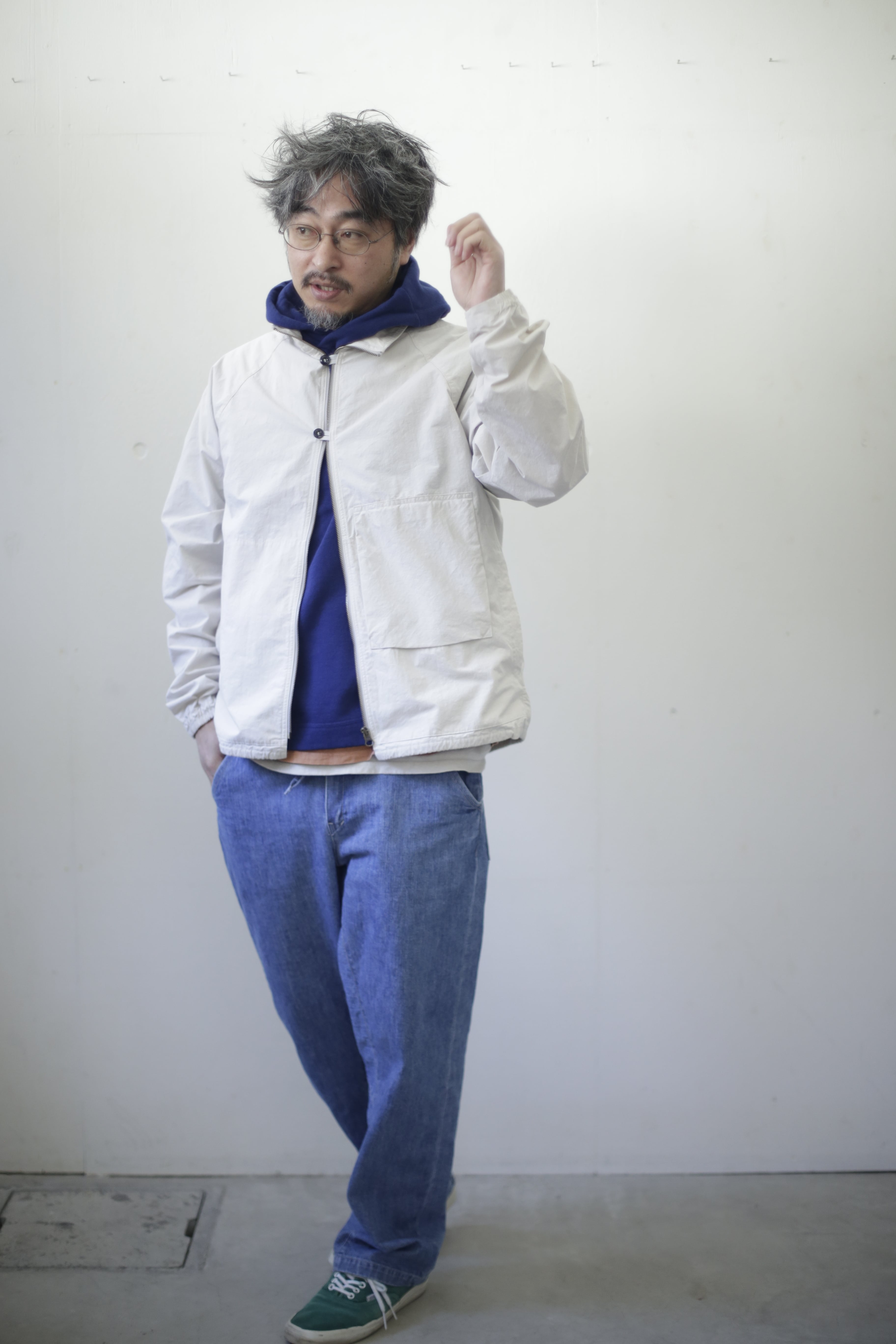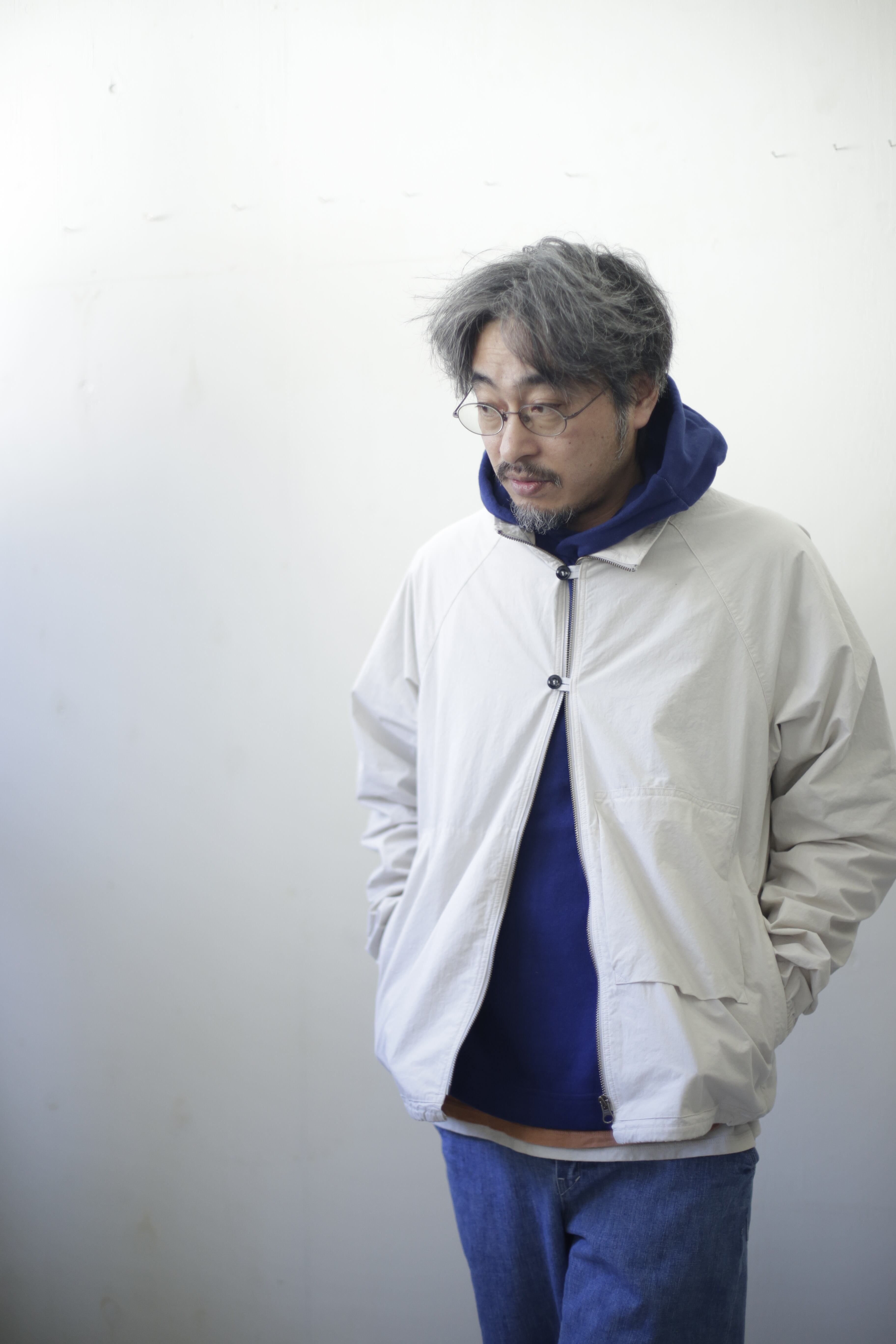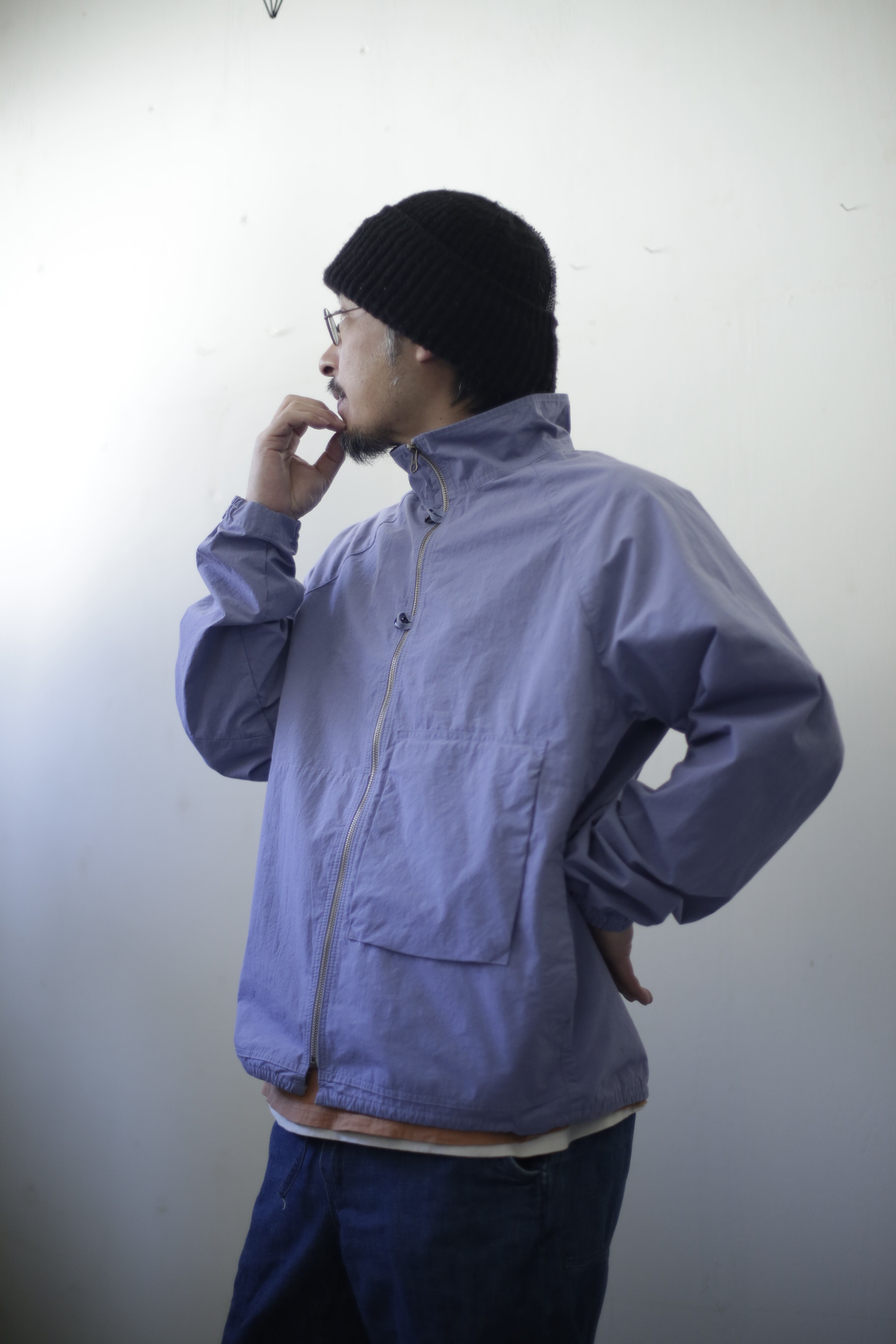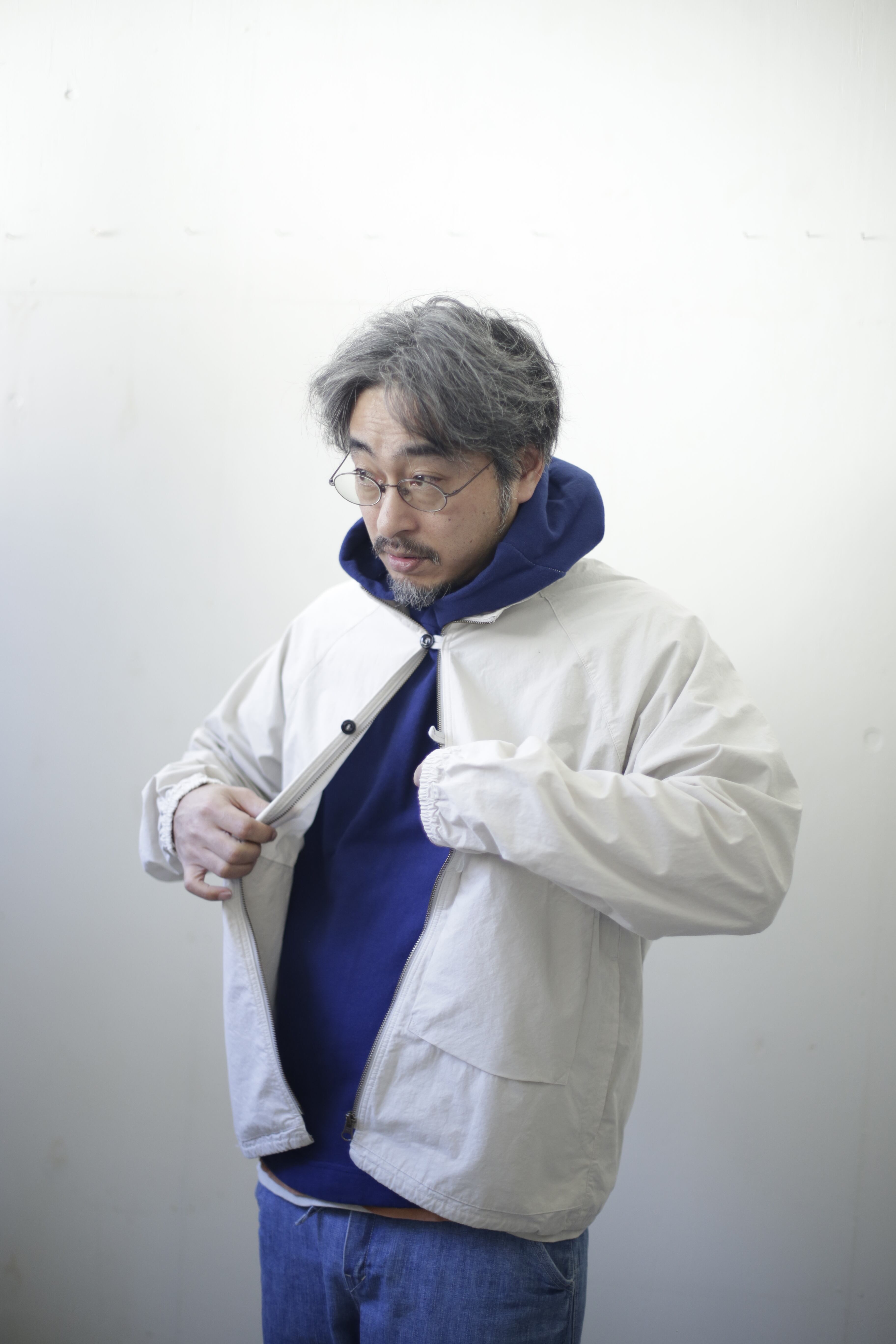 【商品紹介】 薄手でありながら高密度ダンプを使用することでハリやコン、ウインドブレーカー的役割を果たして通年使えるアイテム 。重ね着するイメージ でゆったりとしたシルエットに、背中にはヒトエラグランと名付けた左右非対称の切替が入ります。袖口にはゴム、裾口には簡易的な調節が出来る紐が入る作りになります。