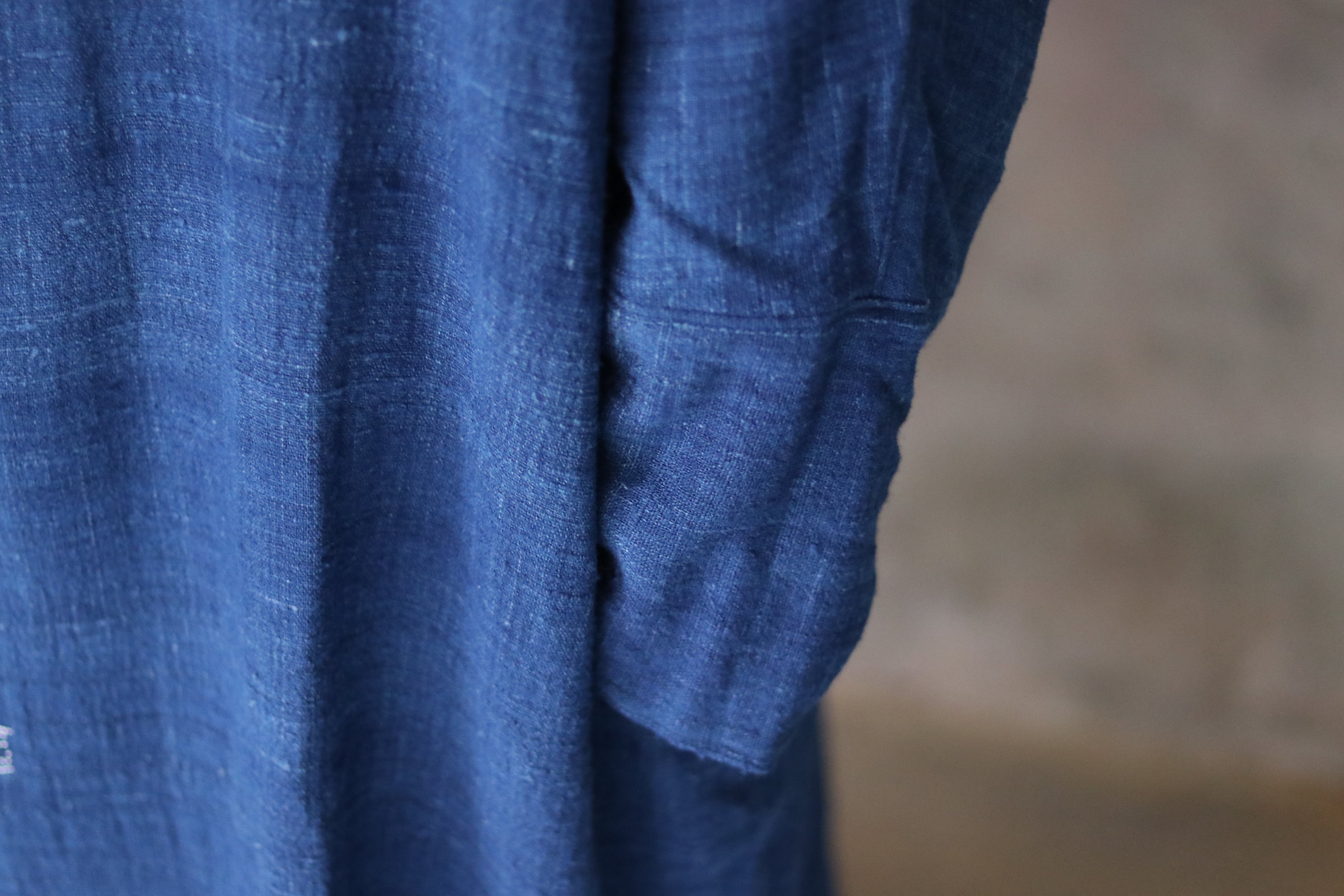 ※天然藍で染色しています。使用を繰り返すことで淡い色へと変化していきます。色移りの可能性があるので、初めは淡色のものとの使用は控え、中性洗剤で洗濯してから陰干してください。1点1点、色の出方やサイズが微妙に異なります。