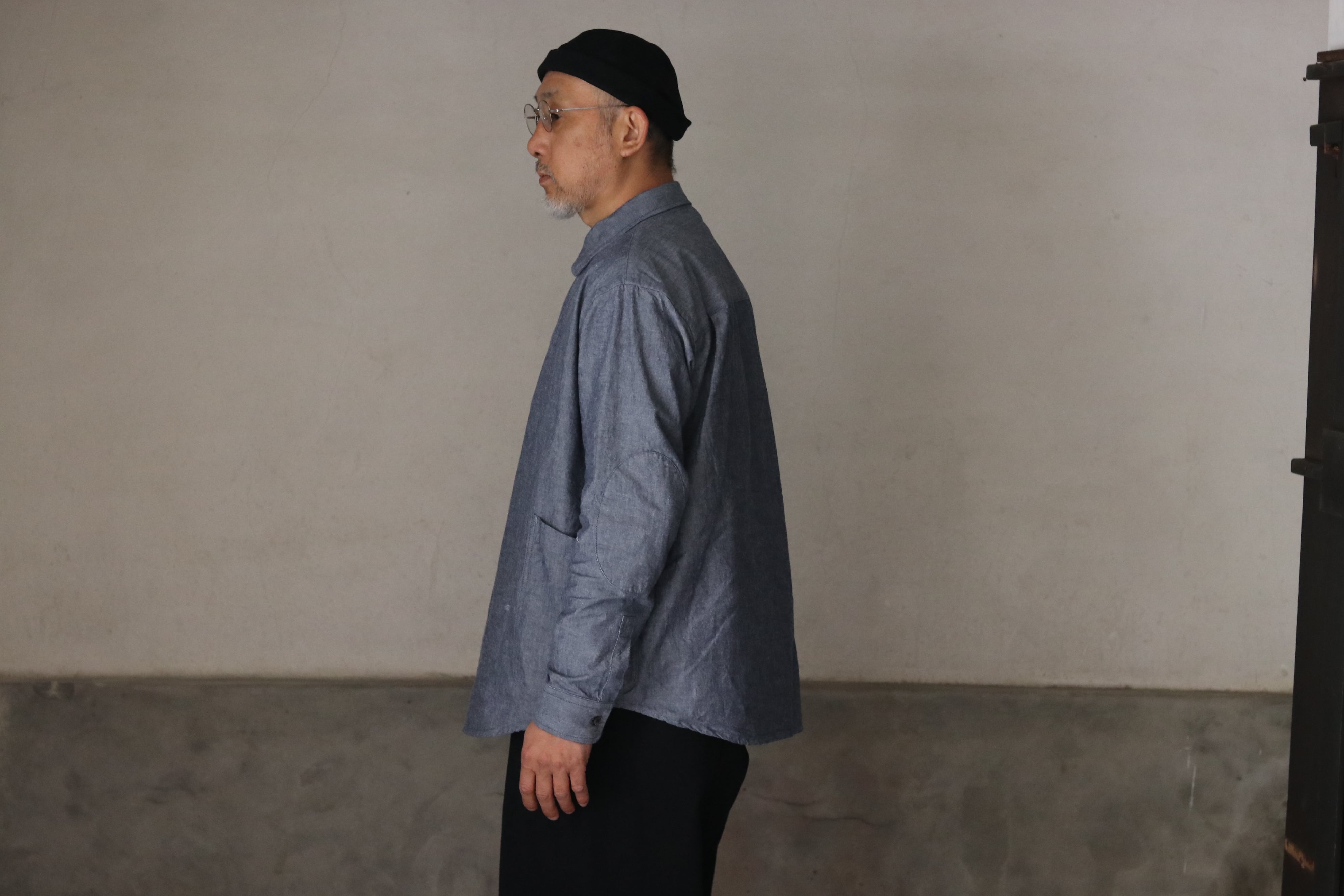 身幅はややゆったり目に、丈は短く作られ、同色で付けられたエルボーパッチやポケットのディティールなど、随所にワーク感漂うデザインとなってます。