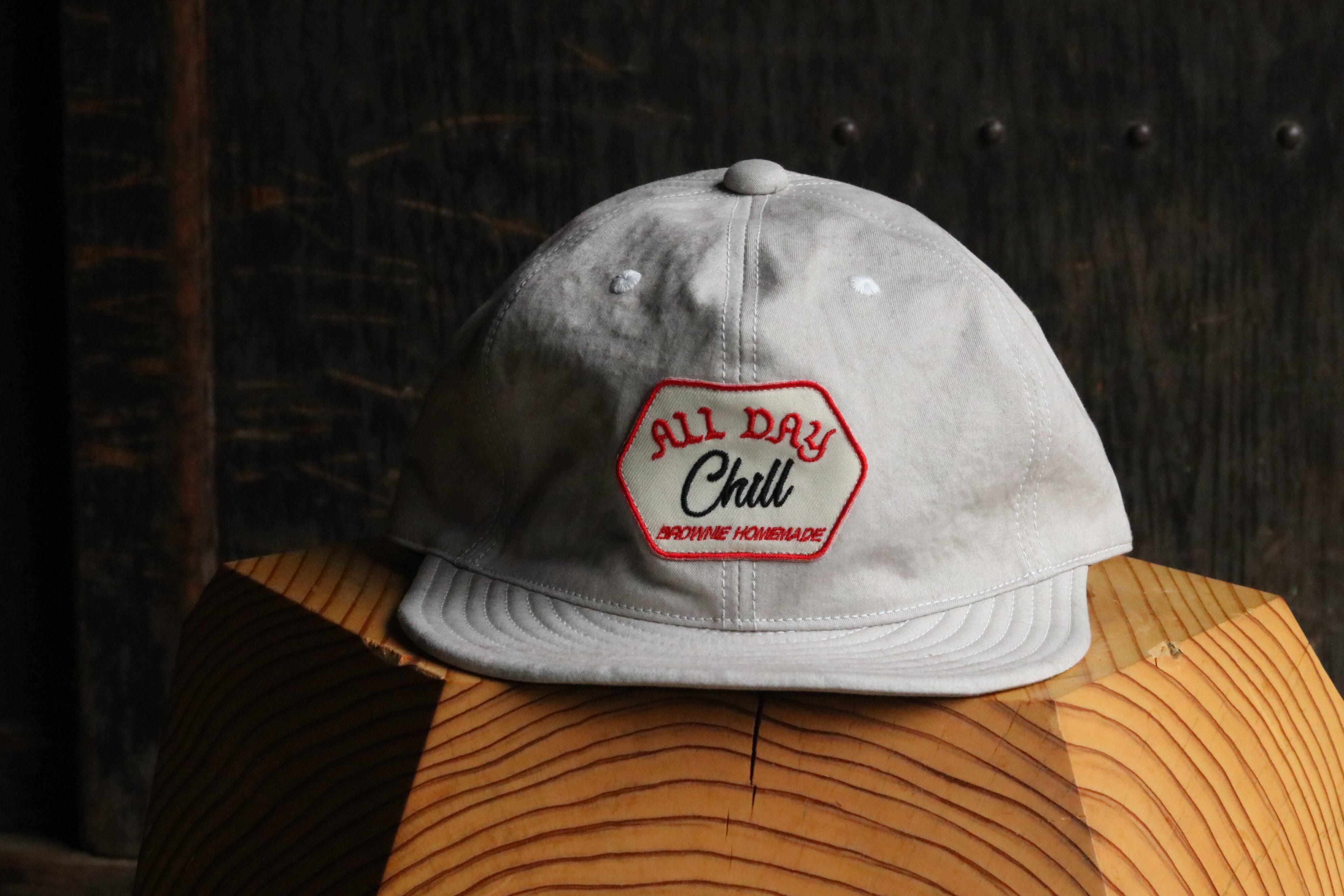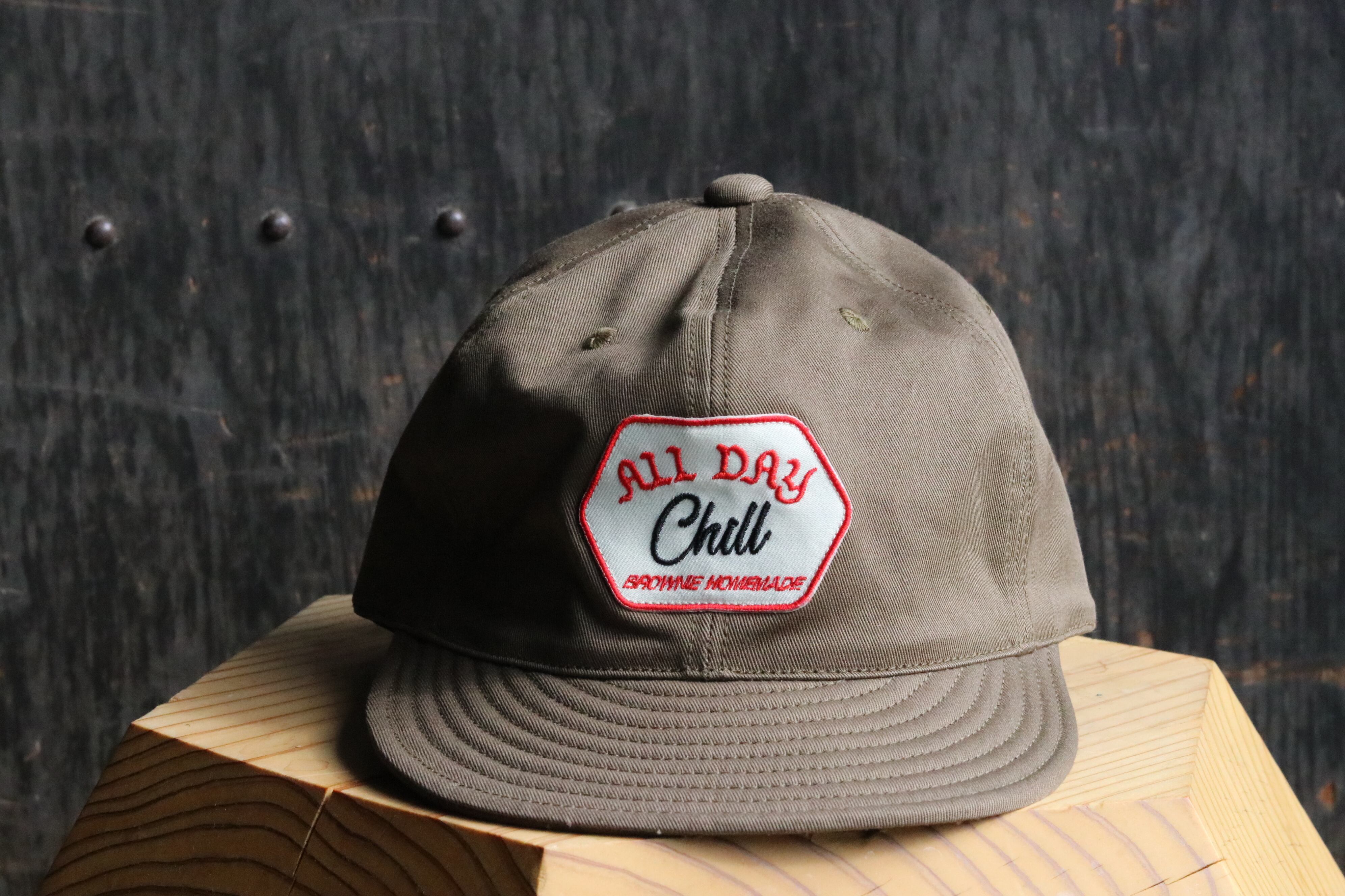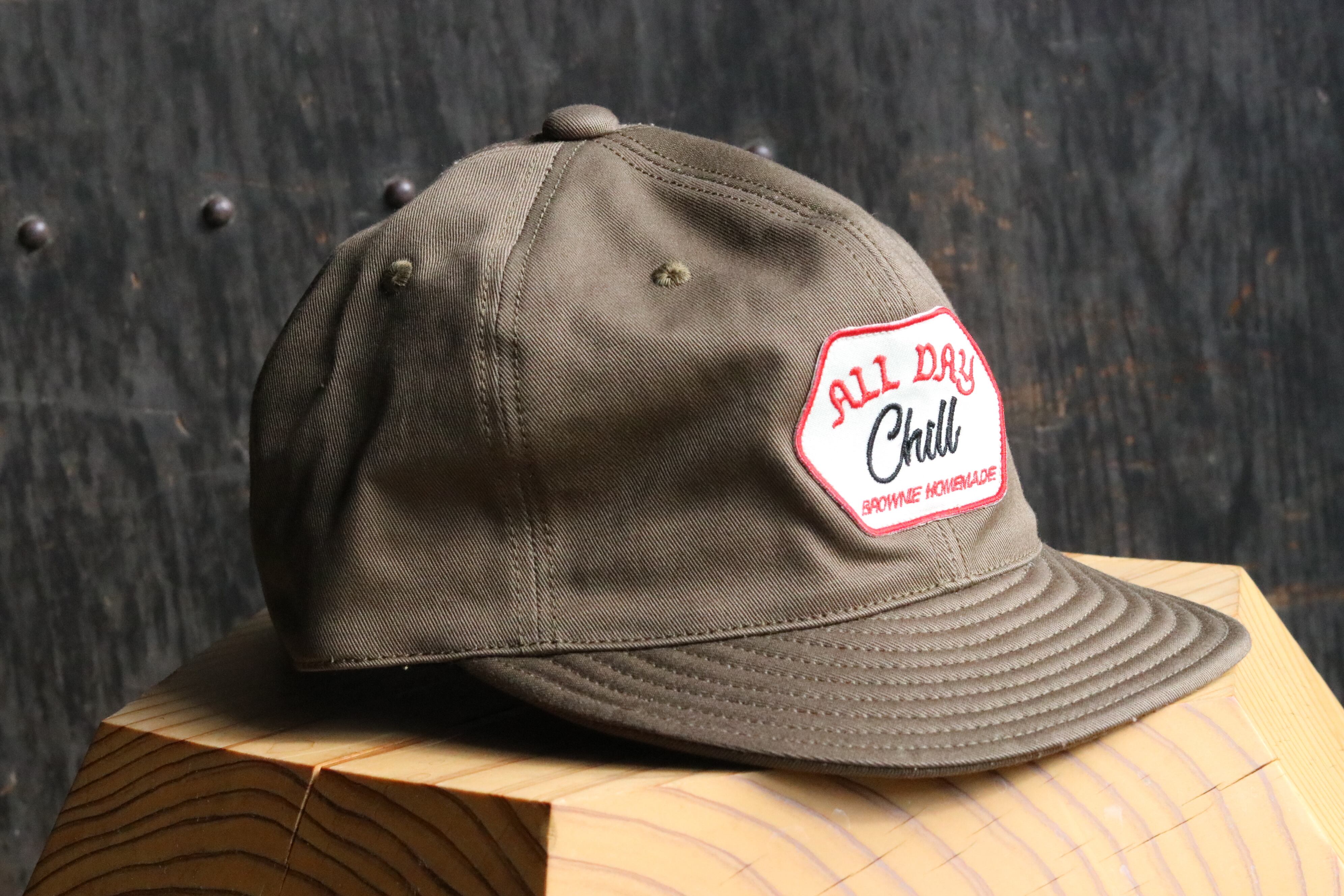 Brownie Homemade "ALL DAY CHILL" 当店でも大人気のブラウニーキャップの名作"ALL DAY CHILL" アジャスター付きのベースボールキャップです。 ツバに芯が無いので携帯に非常に便利です。 今作も良い色ばかりで最高です。
