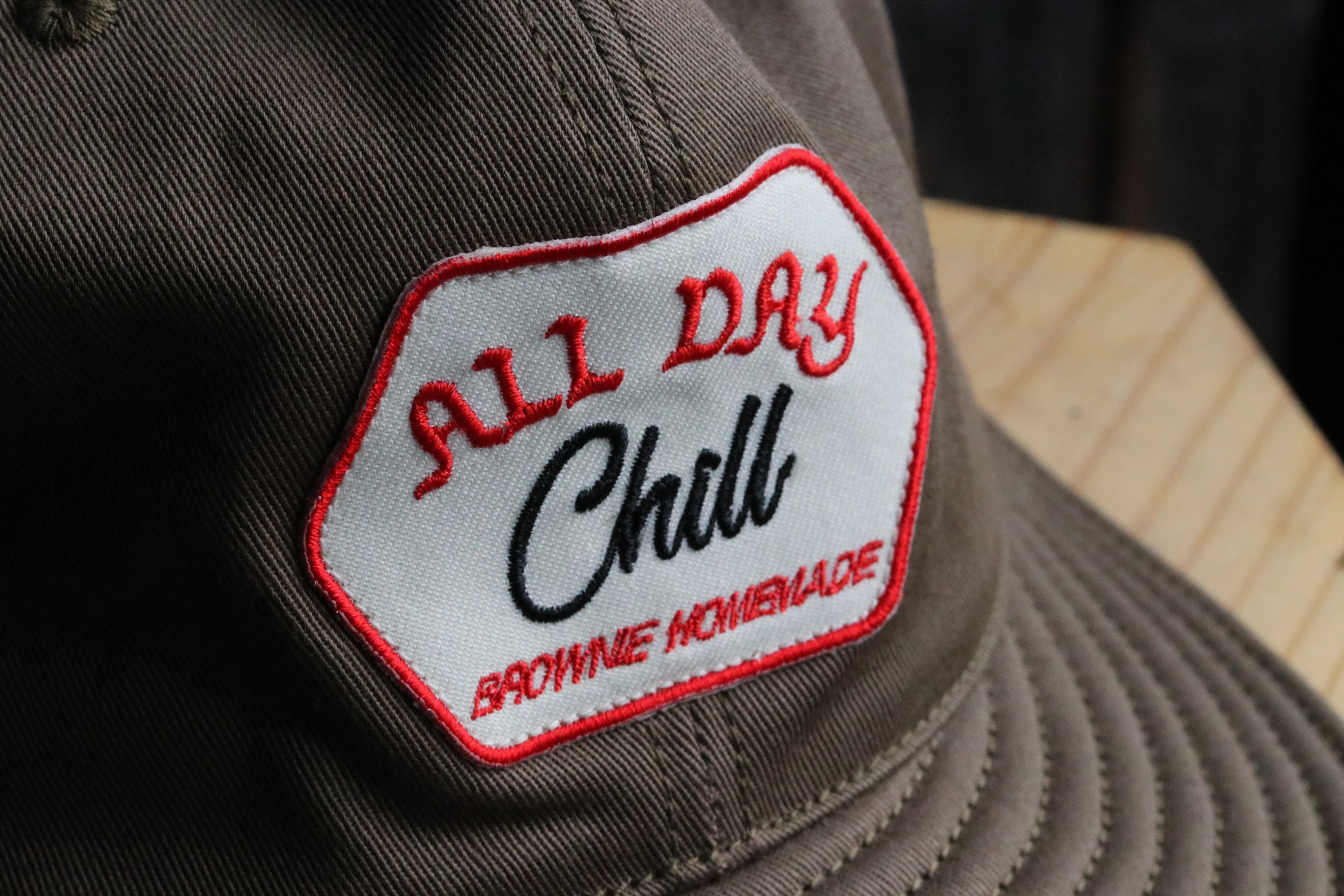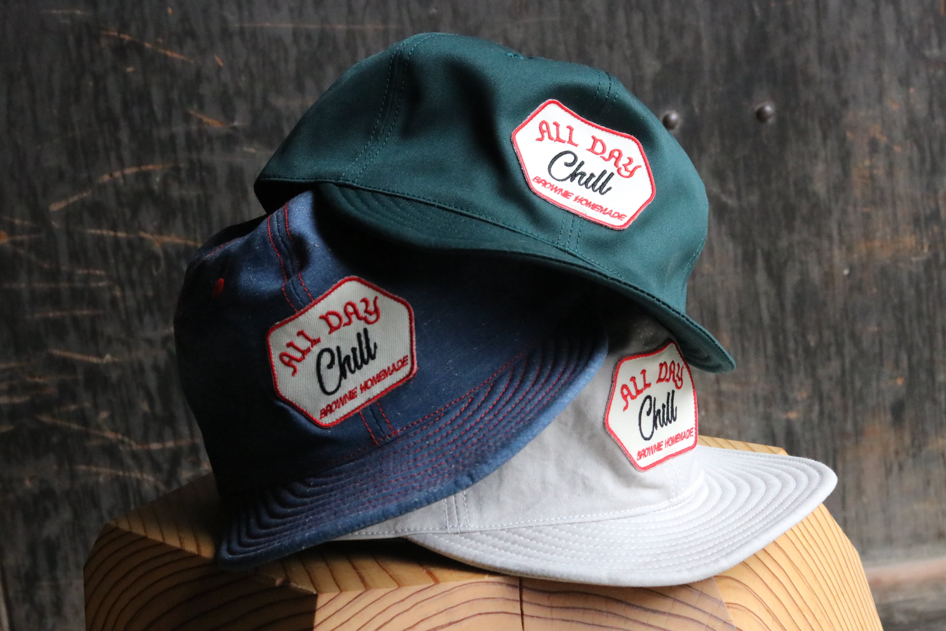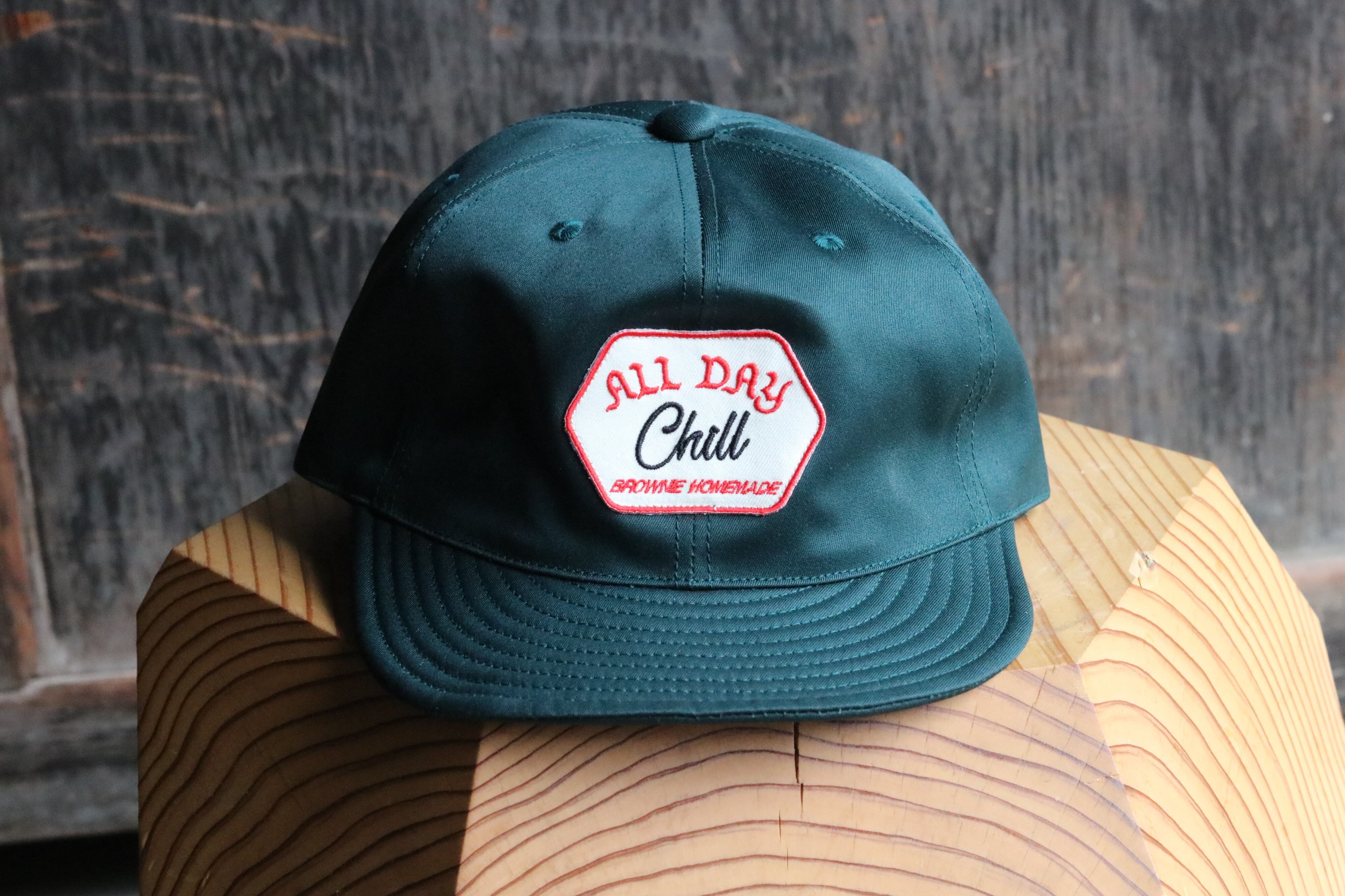 Brownie Homemade "ALL DAY CHILL" 当店でも大人気のブラウニーキャップの名作"ALL DAY CHILL" アジャスター付きのベースボールキャップです。 ツバに芯が無いので携帯に非常に便利です。 今作も良い色ばかりで最高です。