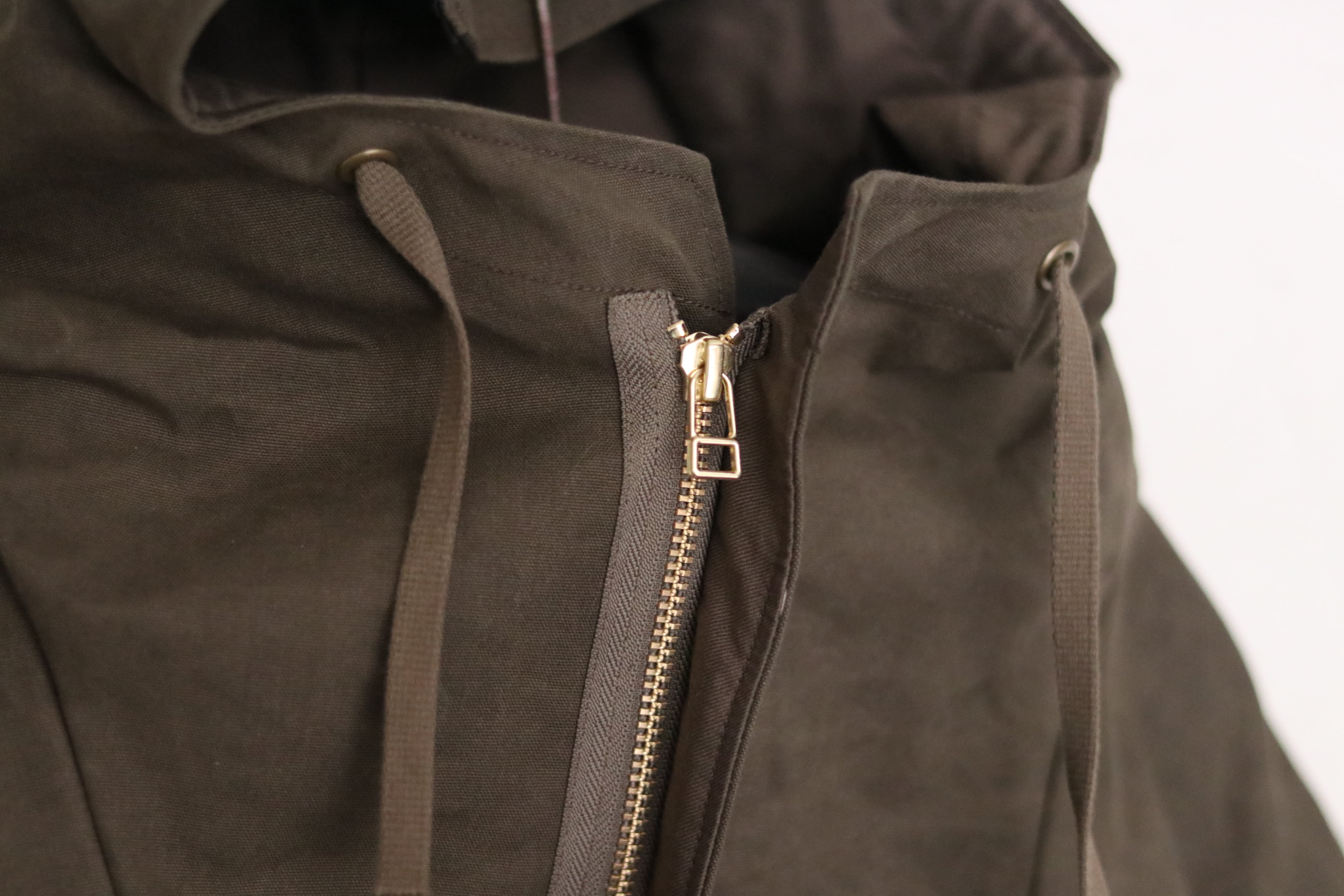 パラフィン加工をした帆布 (綿100%) を使用した丈夫で撥水性のあるプルオーバージャケットです。着れば着るほど愛着が湧く最高級最強ヤッケ!作業着や防寒着など幅広く使える生活の道具のような服をイメージしました。外仕事や外遊びの良き相棒になってくれたら嬉しいです。生地も縫製も日本製です◎