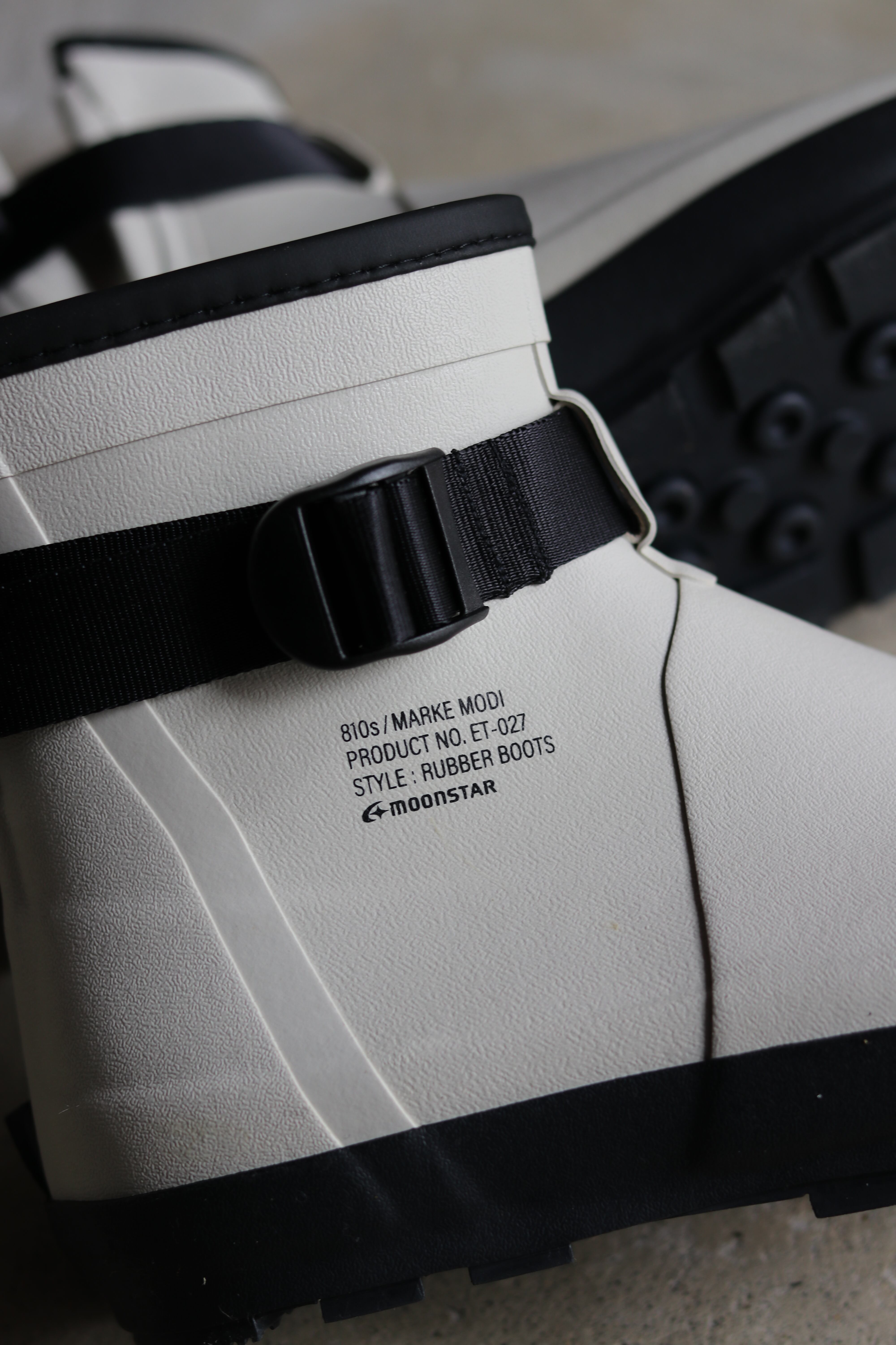 多用途の作業用ゴム長靴をデイリーユースに。バックル仕様にすることで着脱の容易さは保ちつつ、フィット性を高めるシルエットに。履口にパイピングを施し足当たりを軽減した仕様に改良。底面には防滑性を考慮し設計したサクション(吸盤)ソールを採用。ソリッドな印象のワークブーツタイプ。